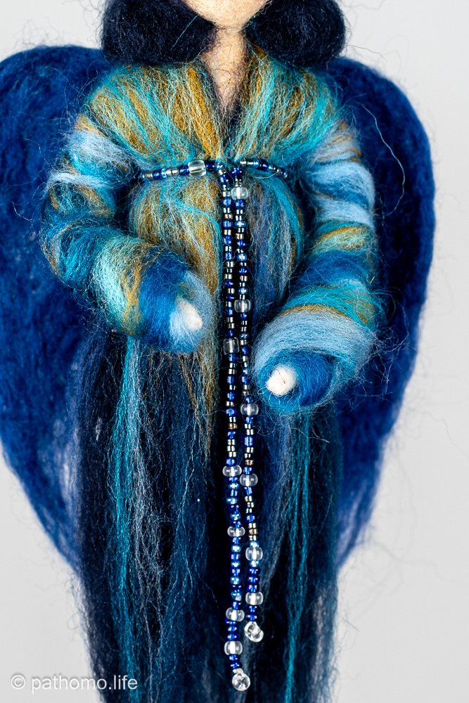 Jeder Engel wird von mir liebevoll nach dem Geburtsdatum der jeweiligen Person gestaltet. Jede Farbe und jedes Detail werden sorgfältig ausgewählt. Sehr oft „zeigt“ ein noch unvollendeter Engel auf intuitive Weise, wie er am Ende aussehen möchte — deshalb ist das finale Ergebnis immer eine schöne Überraschung. Jeder Engel ist ein Unikat und für eine ganz bestimmte Person bestimmt. Die Anfertigung dauert in der Regel 3–4 Werktage. Wir verkaufen keine Massenware!